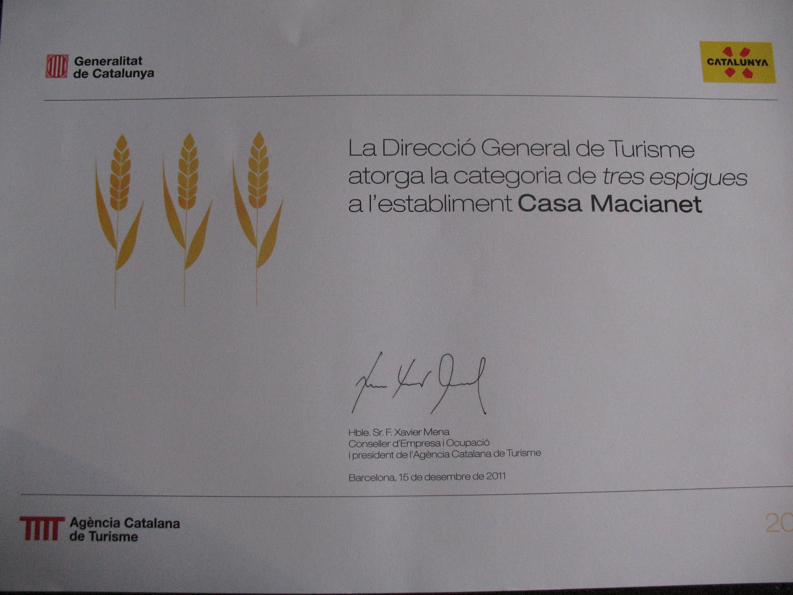 Casa Macianet, tindrà catalogats els seus serveis i oferta amb espigues amb la nova distinció impulsada per la Generalitat de Catalunya i les associacions de Turisme Rural.