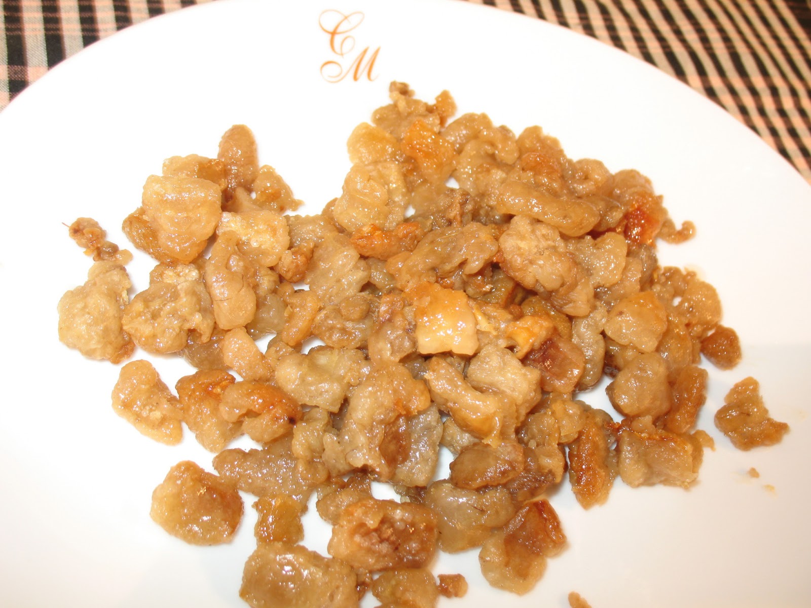 Primer de tot s’agafe el sagí i es talla a trossos petits ,es posa en una cossola , es fa fondre a foc lent, anant remenant de tant en tant